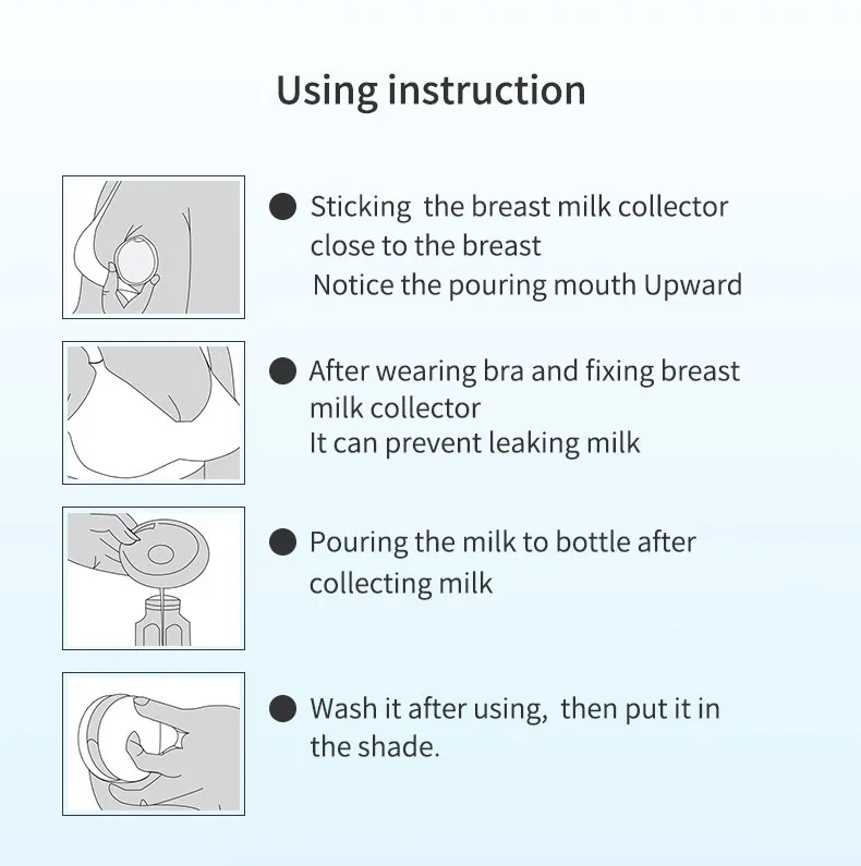 The milk collector is made of silicone resin and PP material, strong and durable, light weight and safe to use.