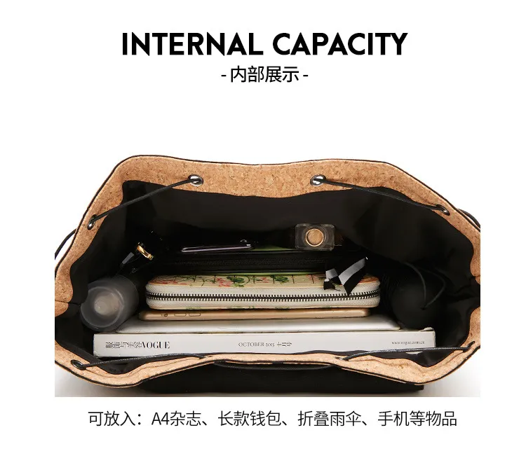 With an emphasis on eco-conscious design, our backpack is made from sustainable cork material, which is lightweight, waterproof, and highly durable. Featuring a chic wooden aesthetic, this fashion-forward backpack offers a unique blend of sophistication and practicality, making it an excellent addition to any wardrobe.