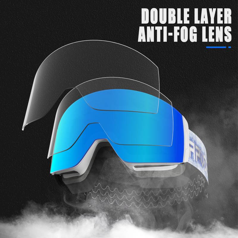 Brand: KAPVOE Included items: Ski goggles, EVA storage case, and a bag for the goggles. Anti-Fog Coating: Minimizes fogging during