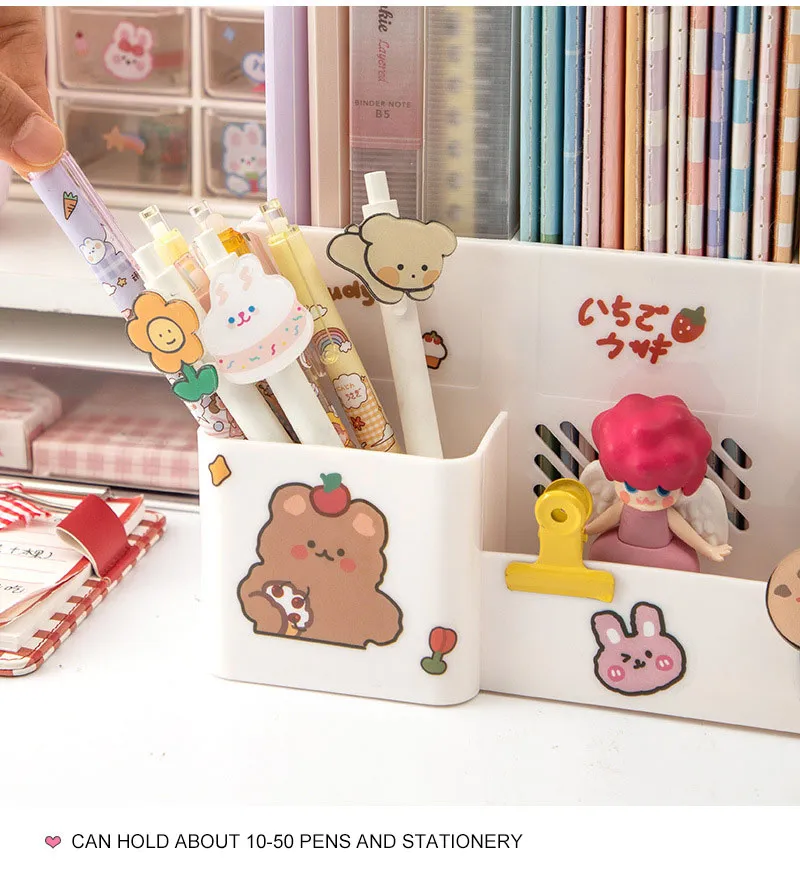 The kawaii design of this desk organizer is its standout feature. With soft pastel colors, cute animal motifs, and charming illustrations, this organizer adds a fun, light-hearted touch to your desk. It’s not just a storage solution—it's a decorative piece that will brighten up your workspace. Perfect for anyone who loves cute and playful decor, this organizer makes staying organized fun.