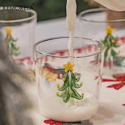 KEMORELA Christmas Tree Glasses Set – Reusable Glass Cups for Coffee, Juice, Milk, and More
