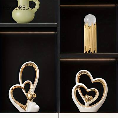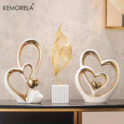 KEMORELA Creative Living Room Statue Ornaments Elegant Love-Shaped Ceramic Sculptures for Home and Holiday Decor