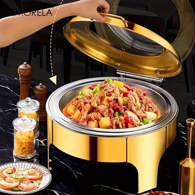 With its elegant golden finish, durable stand, and professional-grade construction, it’s ideal for chefs, caterers, party hosts, and anyone wanting stylish hot-food service.