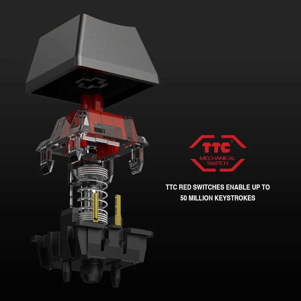 Equipped with 36 TTC Mechanical Red Switches
