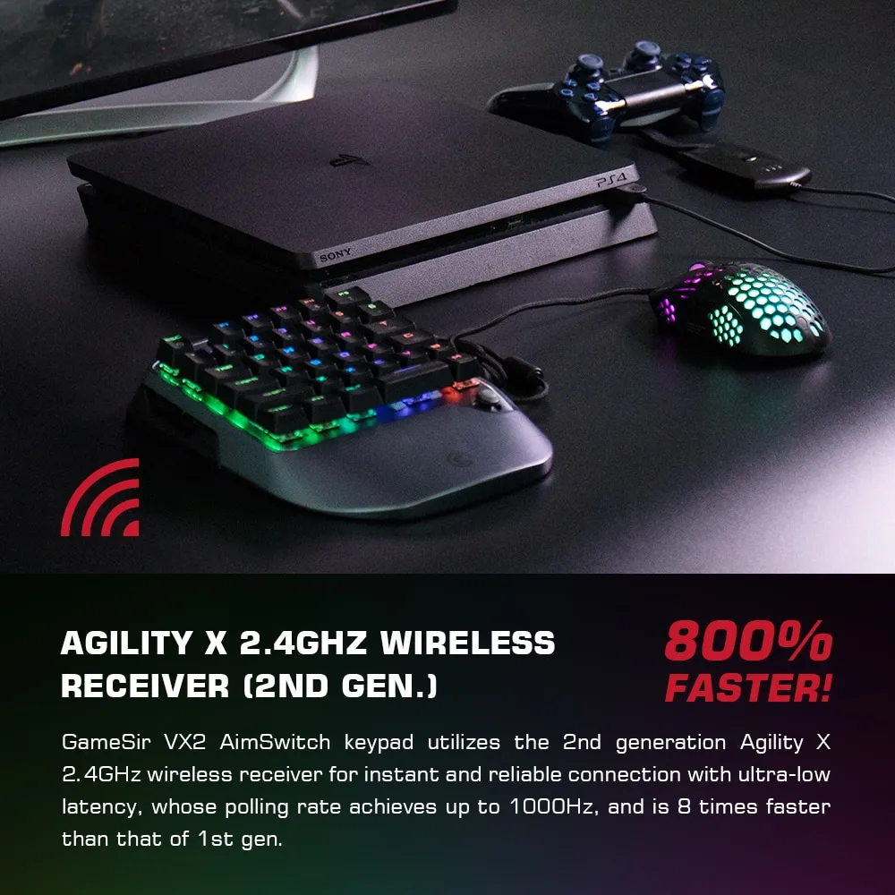 GameSir developed a robust wireless solution to solve the fundamental problems of latency, stability, and connectivity. The end result is Agility X 2.4GHz wireless technology, a pro-grade wireless solution. GameSir VX2 AimSwitch uses the 2nd generation Agility X 2.4GHz wireless dongle for instant wireless connection with ultra low latency. Let you get rid of the wires and play games freely.