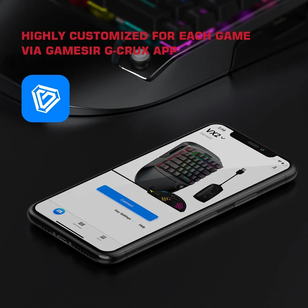 With the GameSir G-Crux app on mobile phone, you can customize every key to your own preference to maximize in-game control. In addition, a variety of parameters can be precisely adjusted through GameSir G-Crux app, including mouse sensitivity, smoothness, horizontal sensitivity, vertical sensitivity, ADS setting, deadzone setting and button setting.