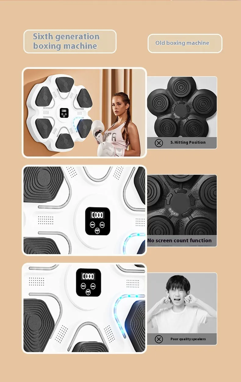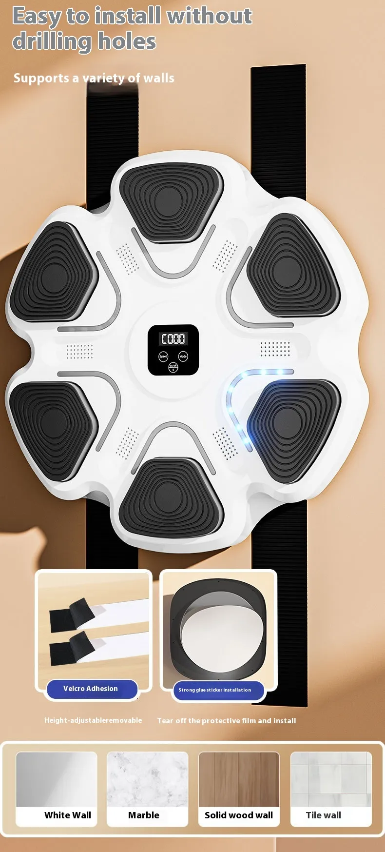- Engaging and Interactive Workouts: Elevate your boxing training with the ONEPUNCH Music Boxing Target, a wall-mounted boxing music machine that transforms traditional workouts into a dynamic and entertaining experience. The six gamified pods, arranged in a circle around the shield, light up in sync with music rhythm, turning your boxing session into an exciting game.