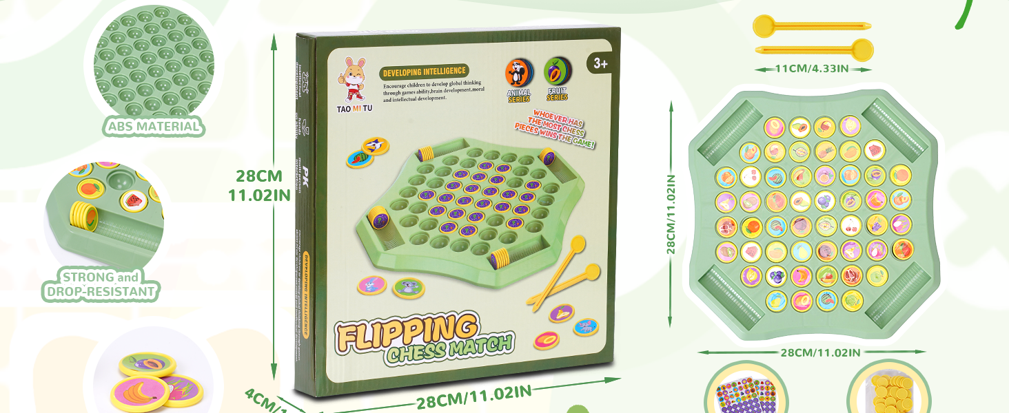 - 🥭【Game Rules】Flip chess memory game means that two people flip the chess pieces, take turns flipping the chess pieces, and put the chess pieces back into the empty slot after each flip of the same pattern, which helps to train the player's memory.