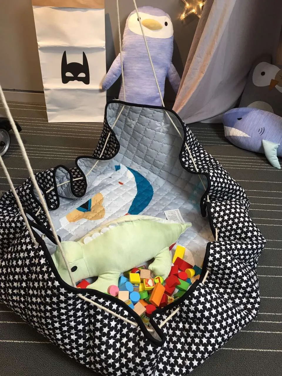 A toy storage bag, double, as a gamepad is the dream of every child. Toys, cars, balls, blocks, and other toys can be quickly removed by a