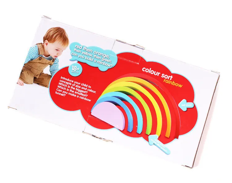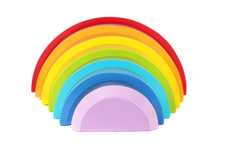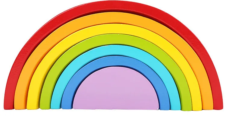 This is a colorful wooden rainbow. Kids all like rainbows. This is very educational. Cognitive colors, sense of space, size, this is all the content that babies need to learn! As well as providing endless fun and encouraging imagination and creativity. The seven-piece puzzle features the wooden curve of the main color of each rainbow, which is really seamless.