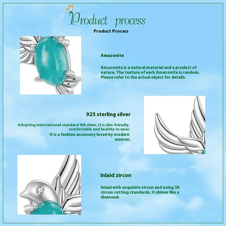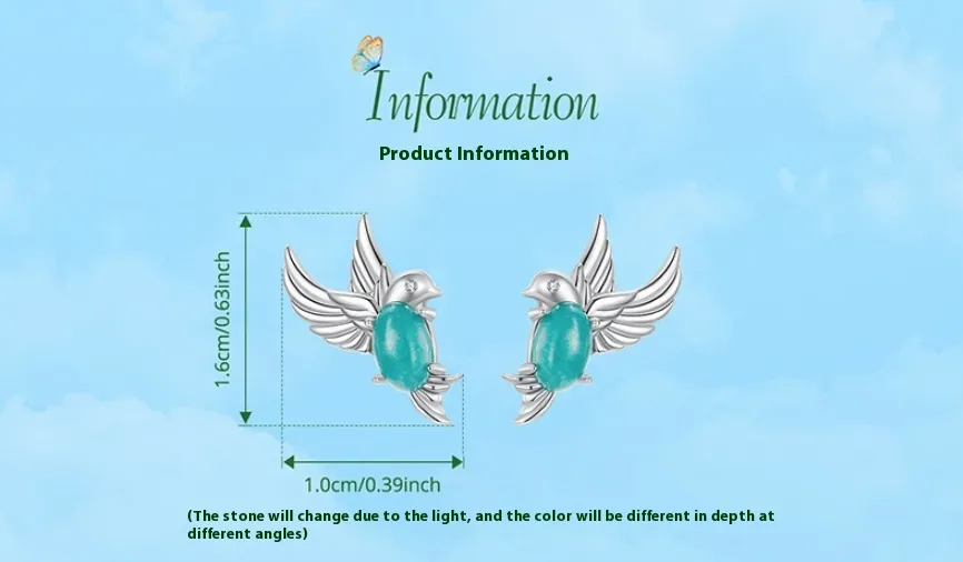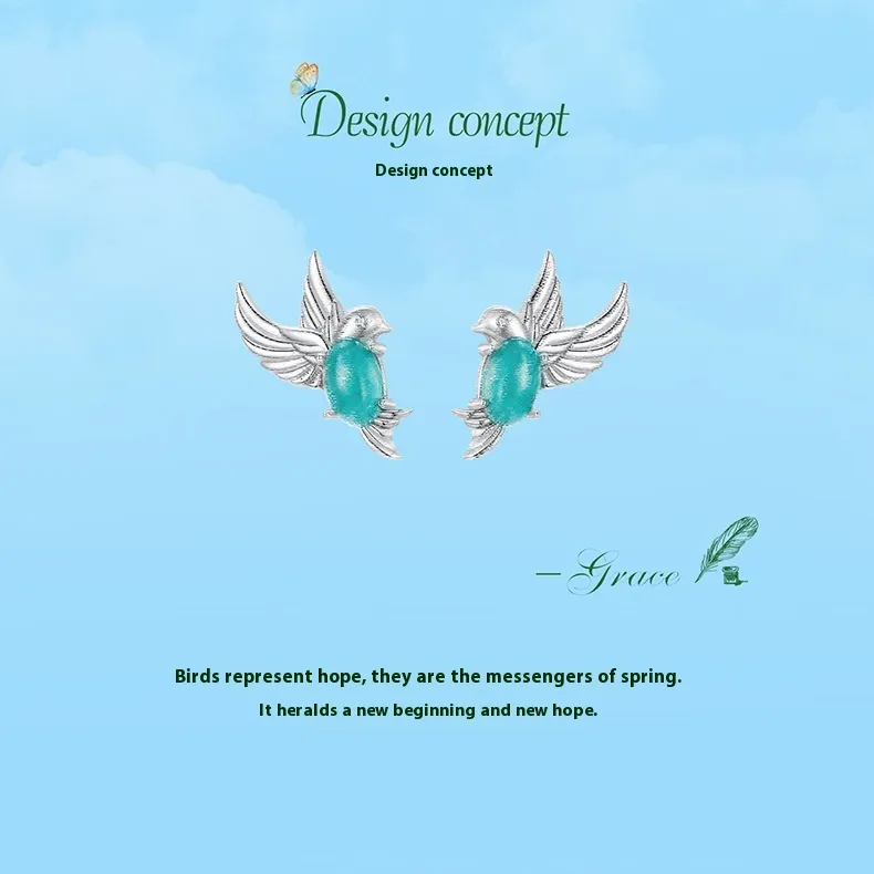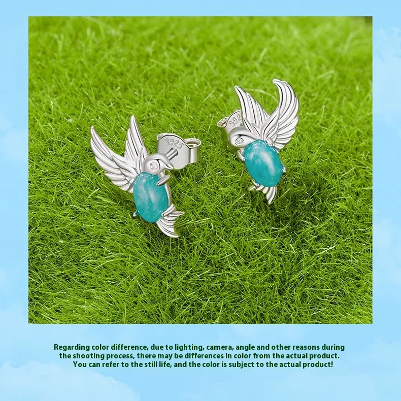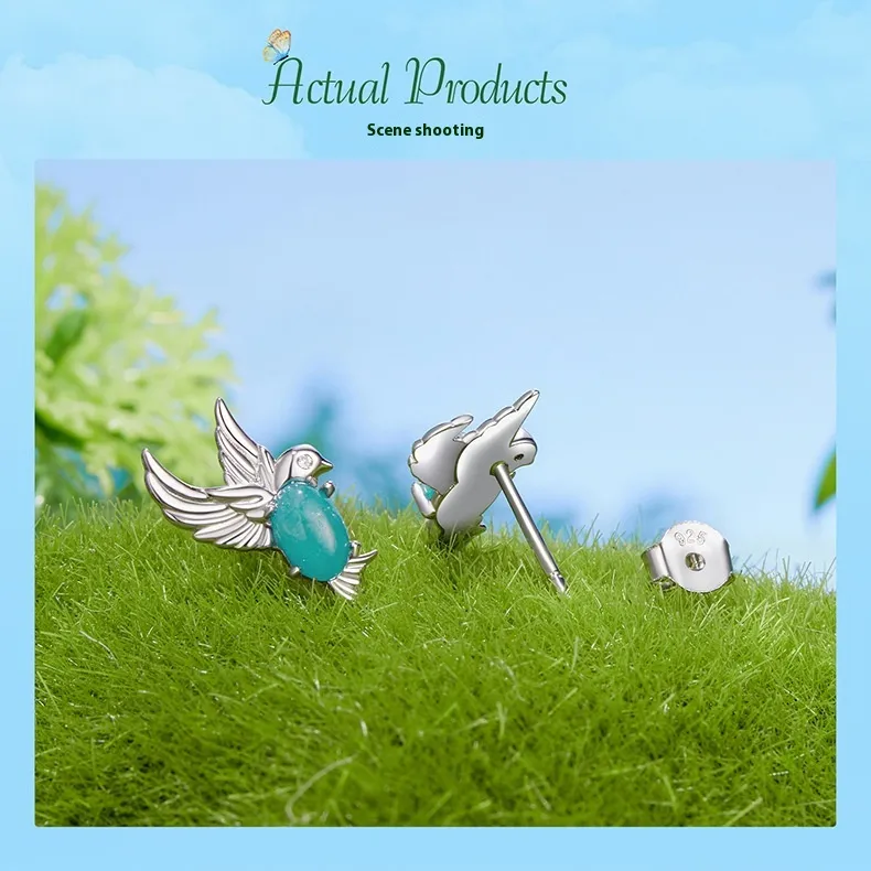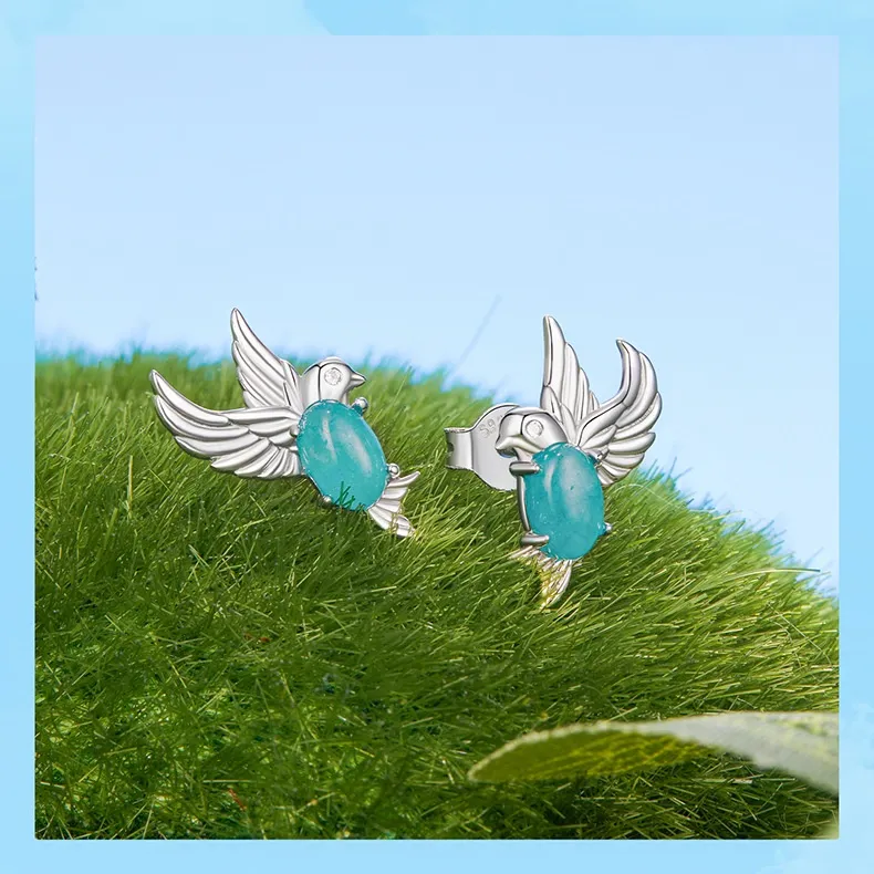Kingfisher Stud S925 Sterling Silver Platinum-plated Earrings