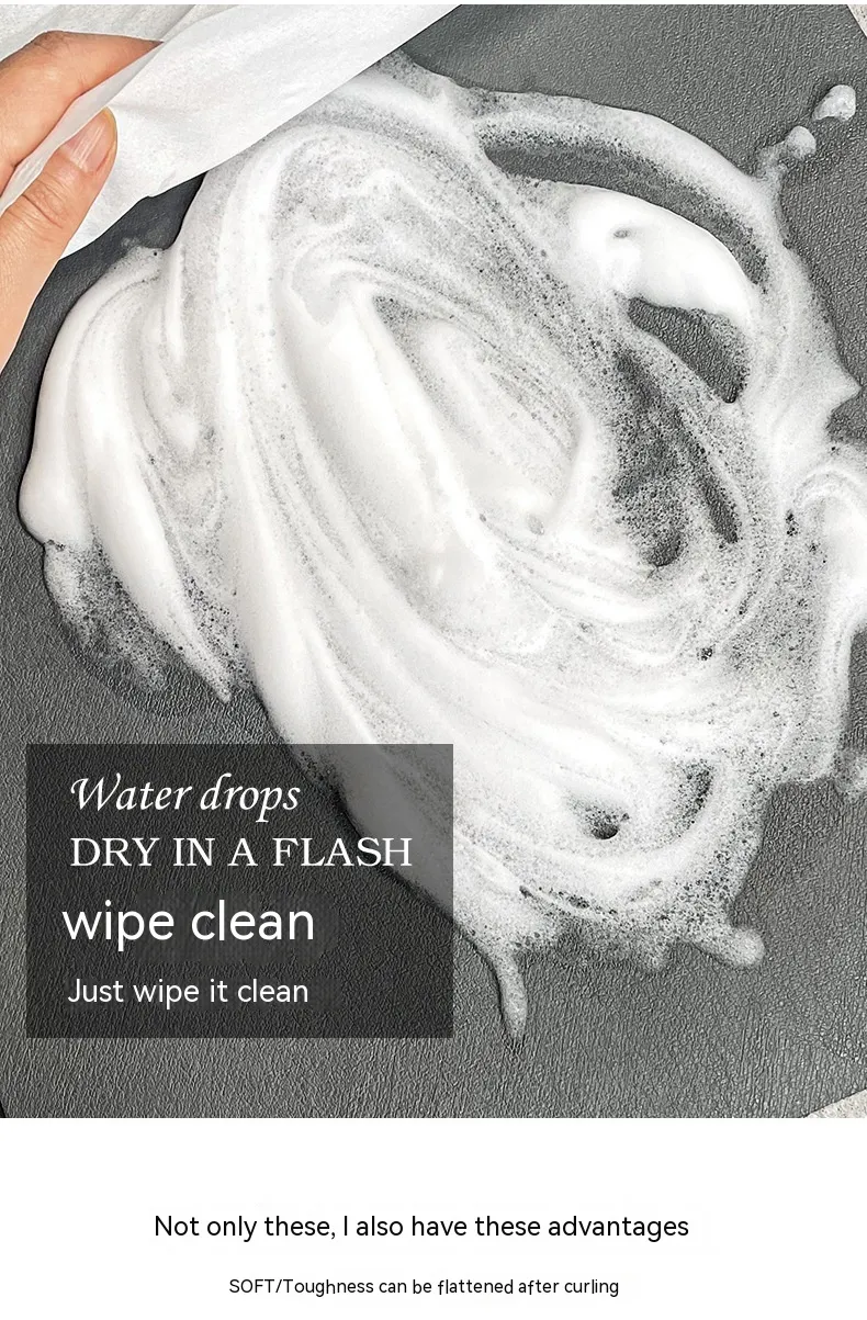 Non-Slip Base: With a non-slip backing, the mat stays securely in place, preventing it from shifting while you dry your