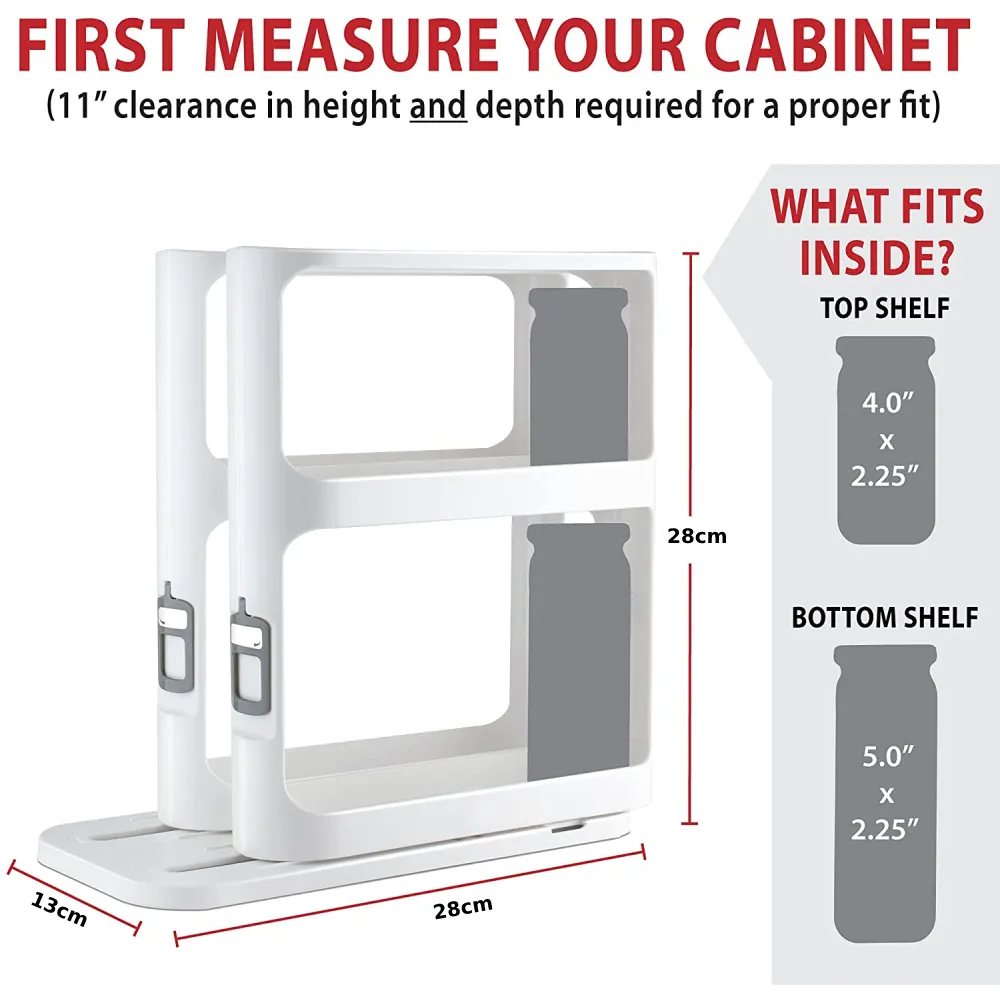 Double Tier Design: Two tiers provide more space for storing a variety of spices, seasonings, and other condiments in an
