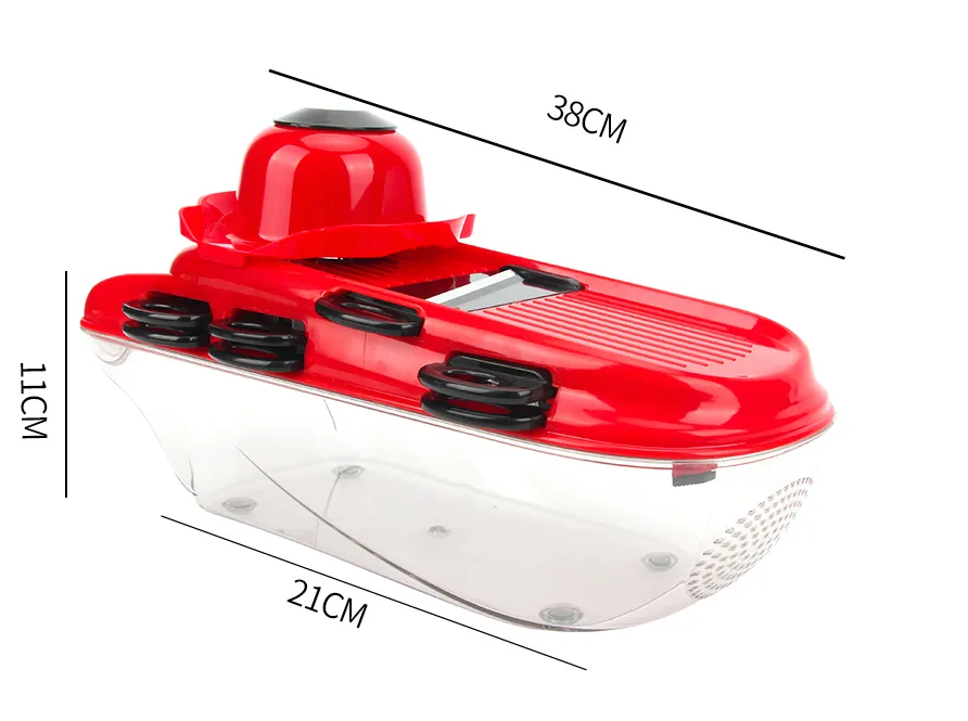 Composition: 7 blades + 1 vegetable cutter body + 1 PET capacity + 1 hand guard