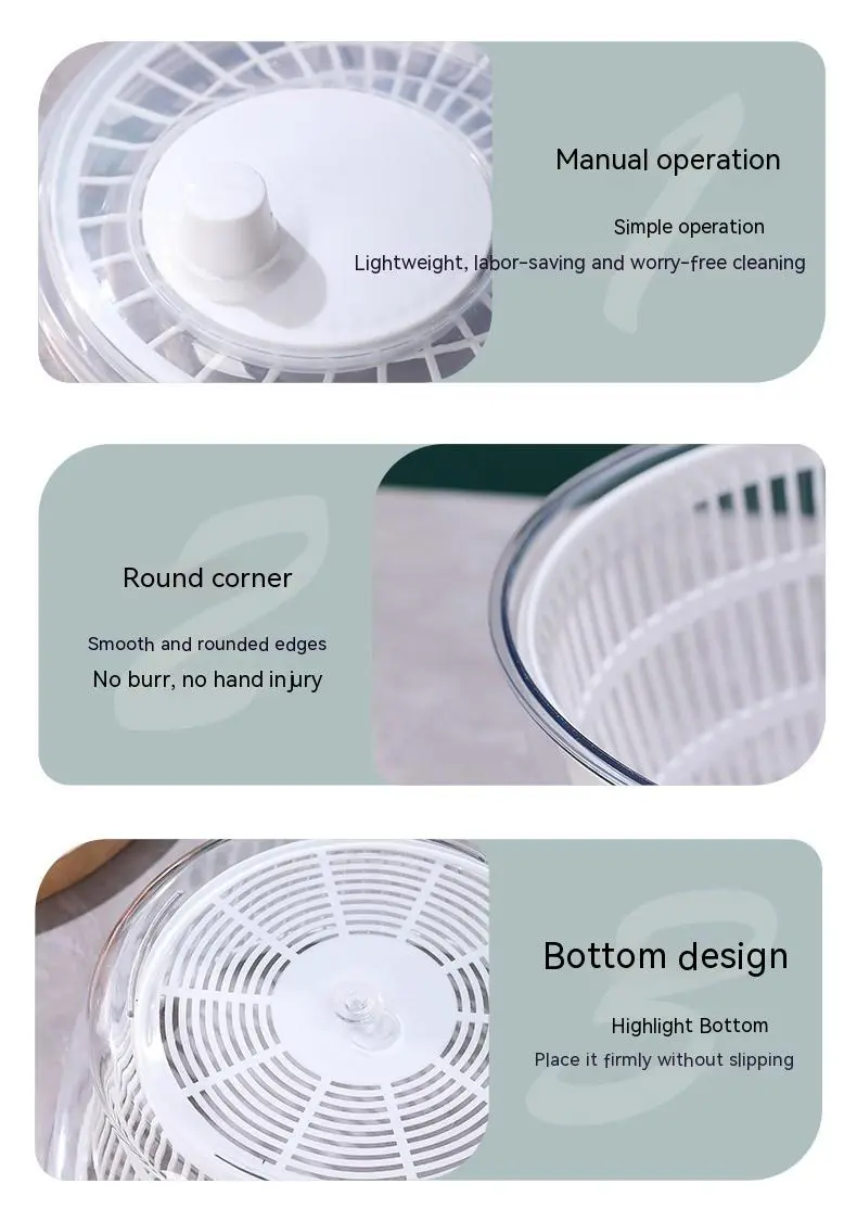 The smooth, easy-to-turn hand crank offers effortless operation, allowing you to spin-dry vegetables with minimal effort. Its ergonomic design ensures a comfortable grip and makes it easy to control the spinning speed.