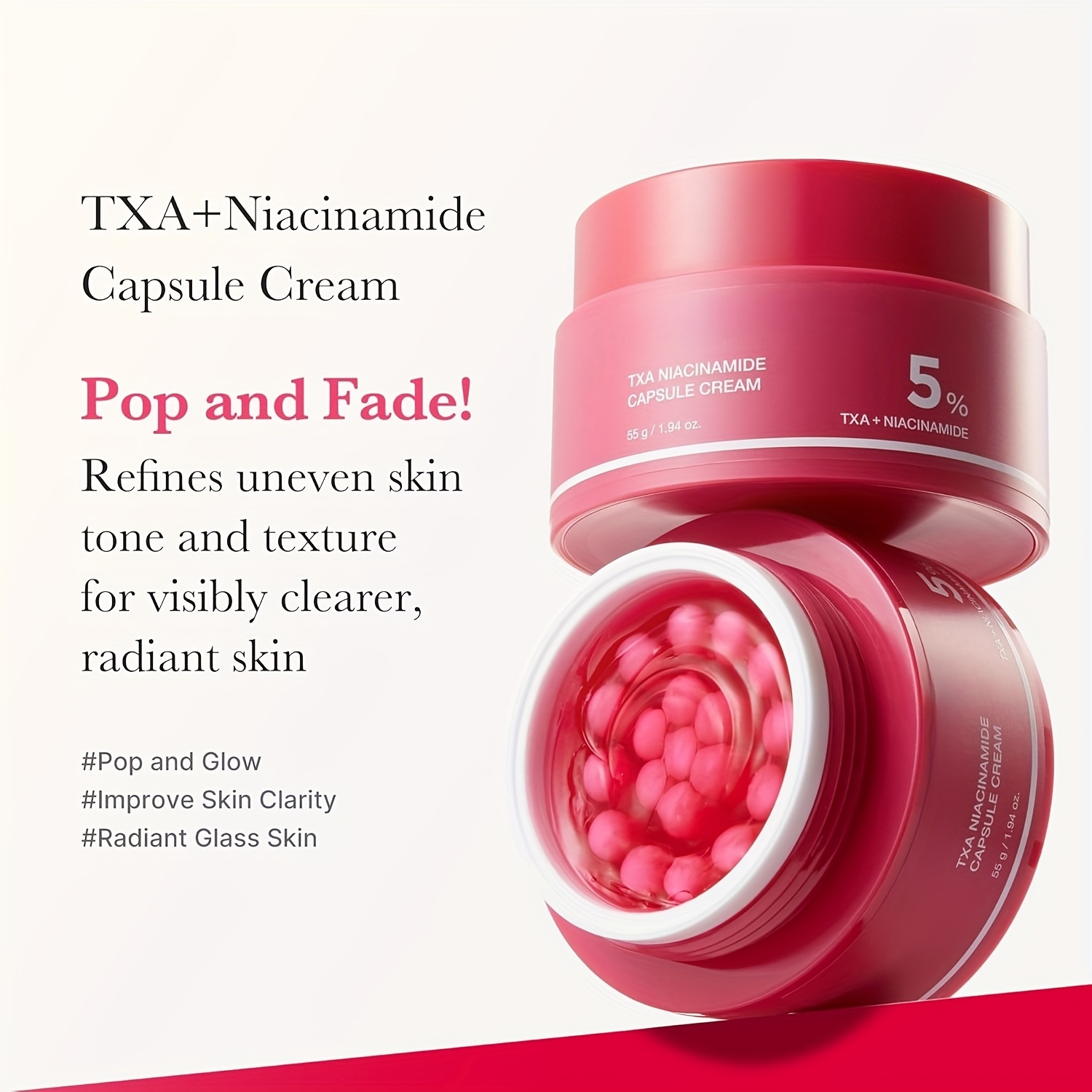- Capsule Cream with TXA + 5% Niacinamide for sustained hydration