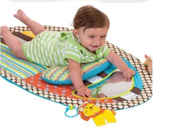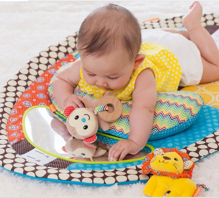 The game blanket is 87cm long and 56cm wide, which is a big play space for the baby. A brightly colored game blanket with doll pendants, mirrors, height gauges and more. Packed in PVC bags for easy carrying.