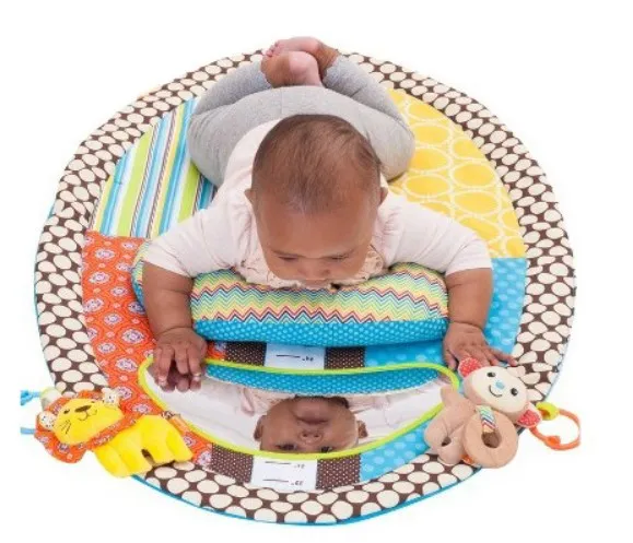 The game blanket is 87cm long and 56cm wide, which is a big play space for the baby. A brightly colored game blanket with doll pendants, mirrors, height gauges and more. Packed in PVC bags for easy carrying.