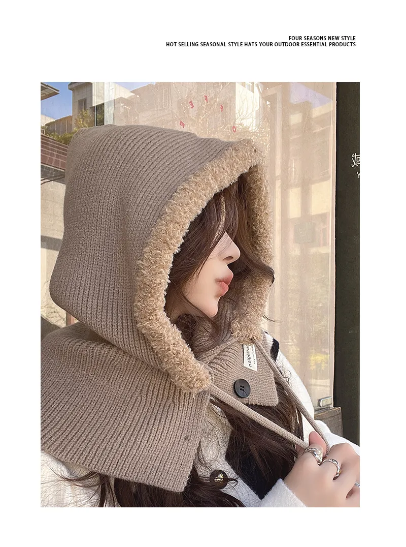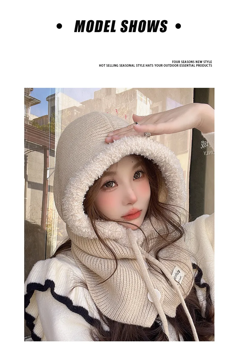 Korean Balaclava Hat Female Winter Warm Hat Scarf One Couple Earflaps Woolen Knitted Hat