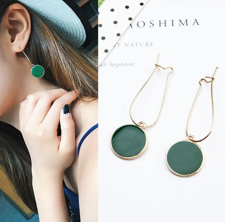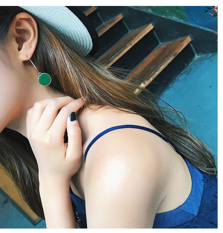 Korean Fashion Dripping Stud Earrings Green Circle