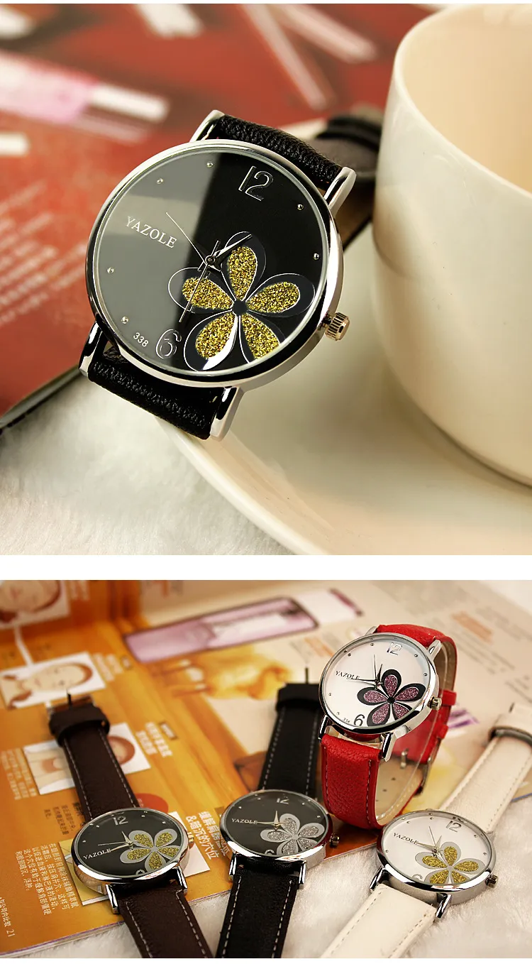 [Watch Features]: Casual tide men and women couple watches, exquisite and elegant five-leaf flowers. The soft strap has a good gloss and a