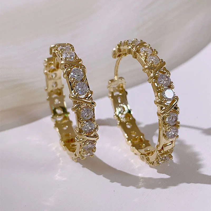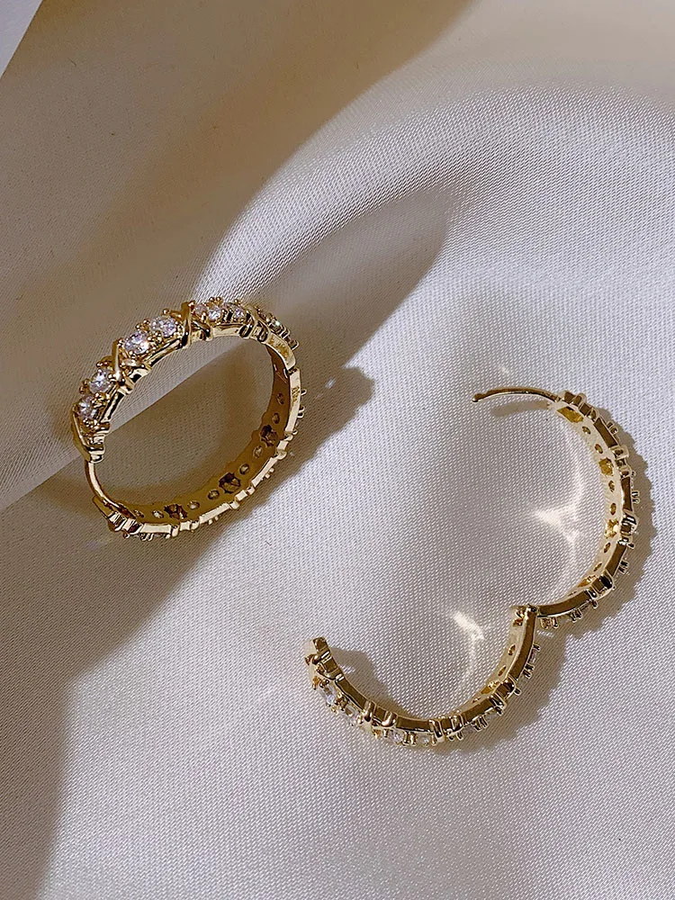Korean Fashion Simple Zircon X Metal Hoop Earrings