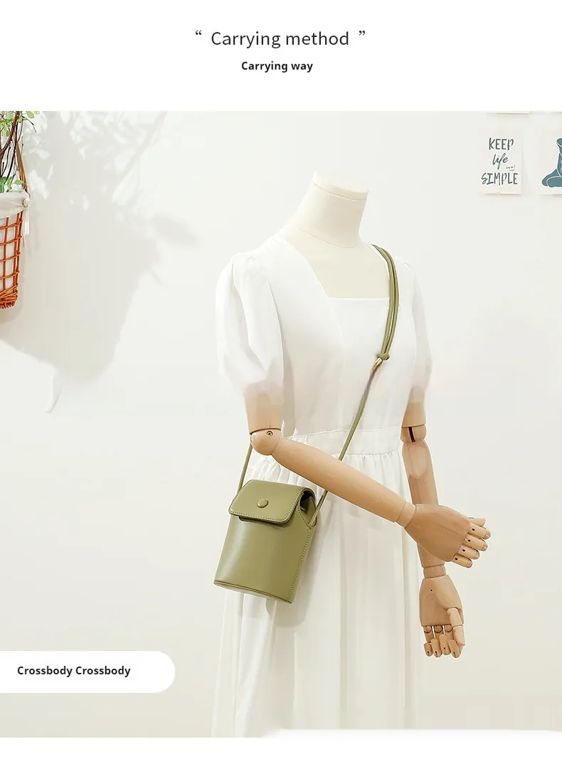 Korean PU Mobile Phone Bag Retro Women's Bucket Bag