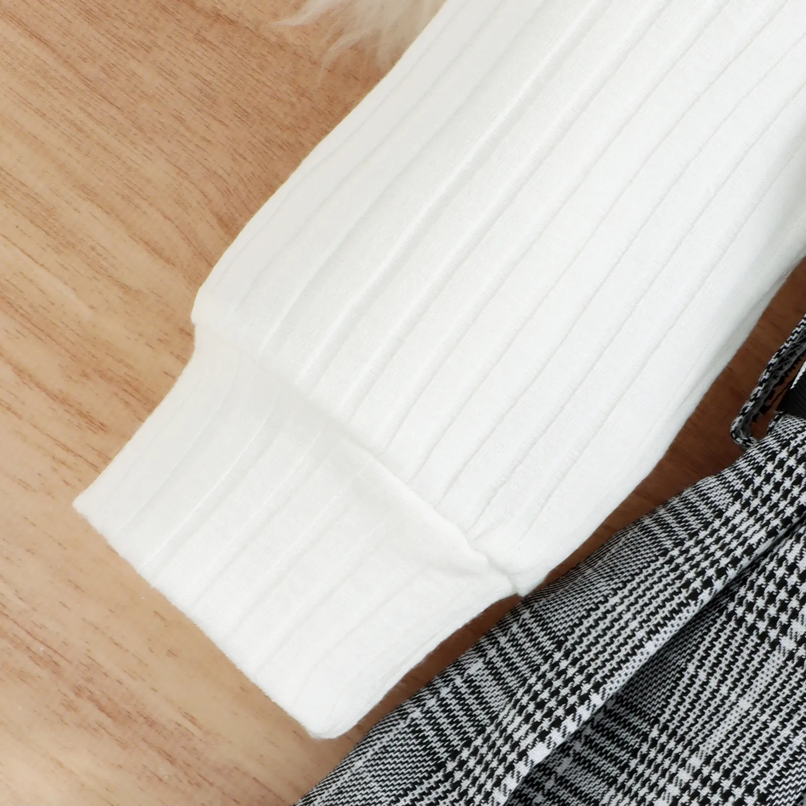 Korean Style Children Autumn Winter Cotton Sunken Stripe Turtleneck Top Plaid Suit