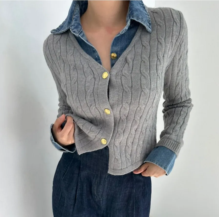 While the Korean Style Contrast Color Knitwear Denim Stitching Long Sleeve Sweater is perfect for New Zealand’s cooler months, it’s versatile enough to be worn year-round. During the transitional weather of autumn and spring, this sweater makes the ideal layering piece, and in winter, it’s a cozy option to wear under heavier coats. The breathable fabric ensures that it’s comfortable in varying climates, making it a must-have for any season.