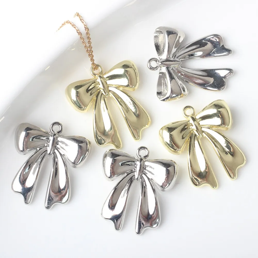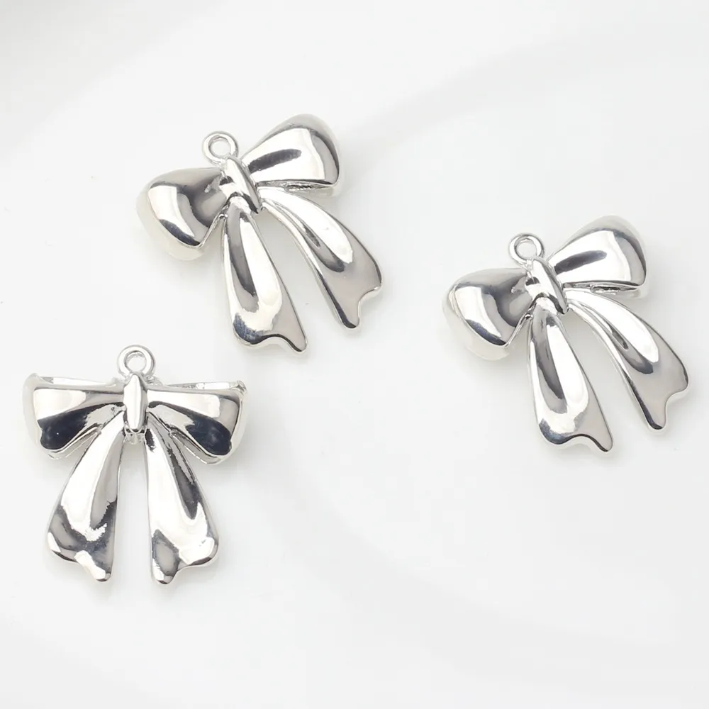 Korean Style Fashionable Simple Alloy Bow Silver-plated Pendant Accessorie