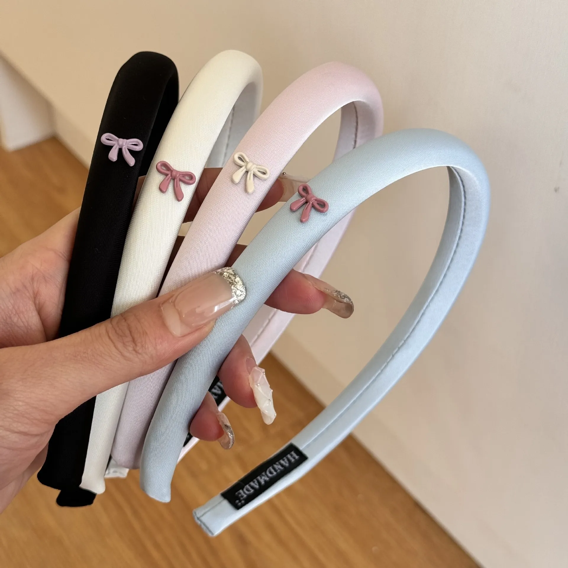 Color: pink bow headband, black bow headband, blue bow headband, beige bow headband