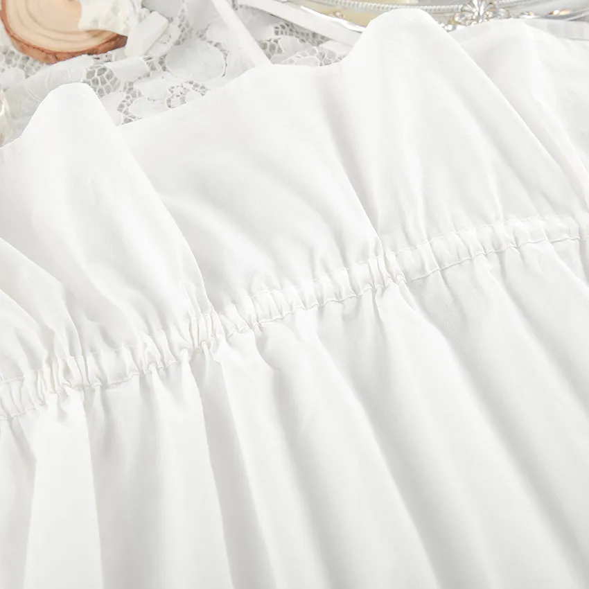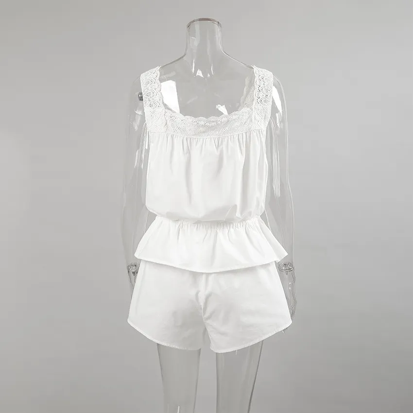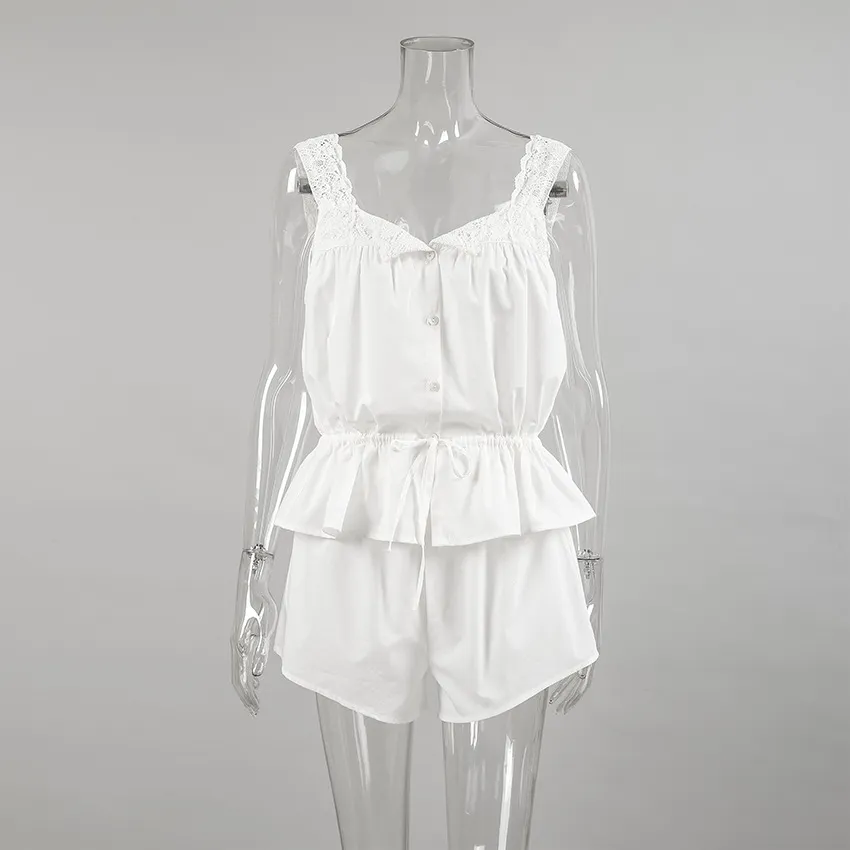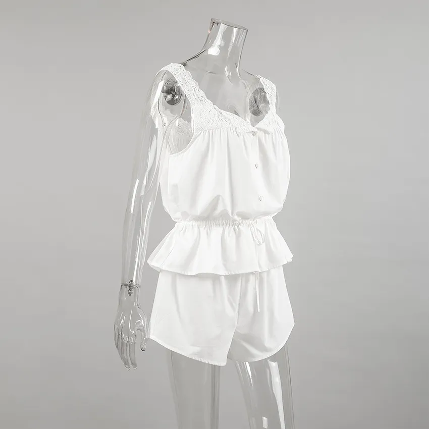Lace Spaghetti-strap Ruffle Top And Shorts Two-piece Cotton Home Wear