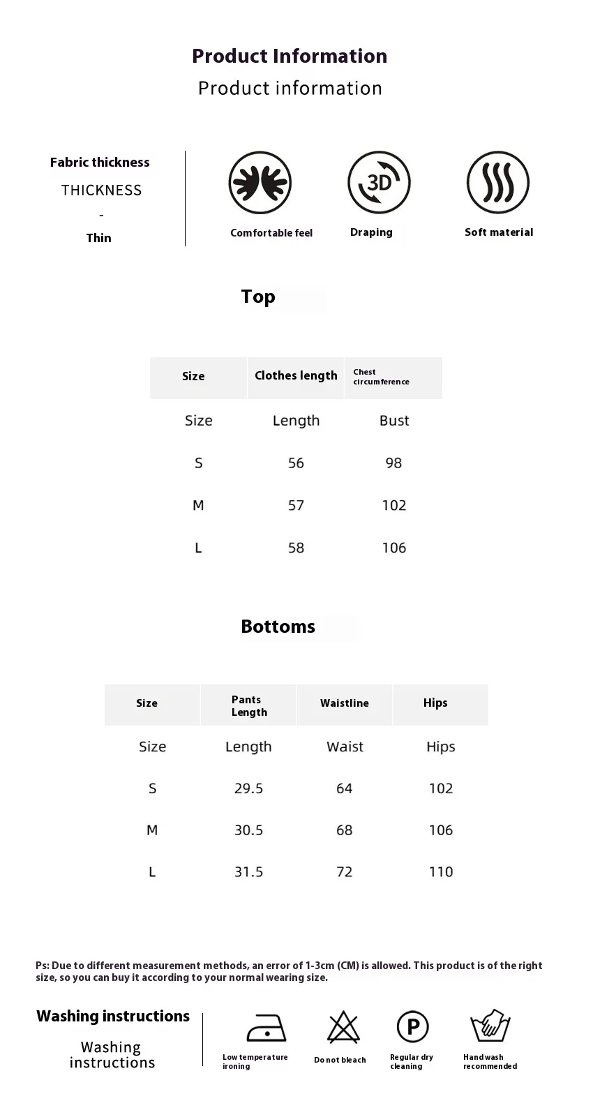 2-3cm differences due to manual measurement. 2. Please check the size chart carefully before you buy the item, if you don't know how to