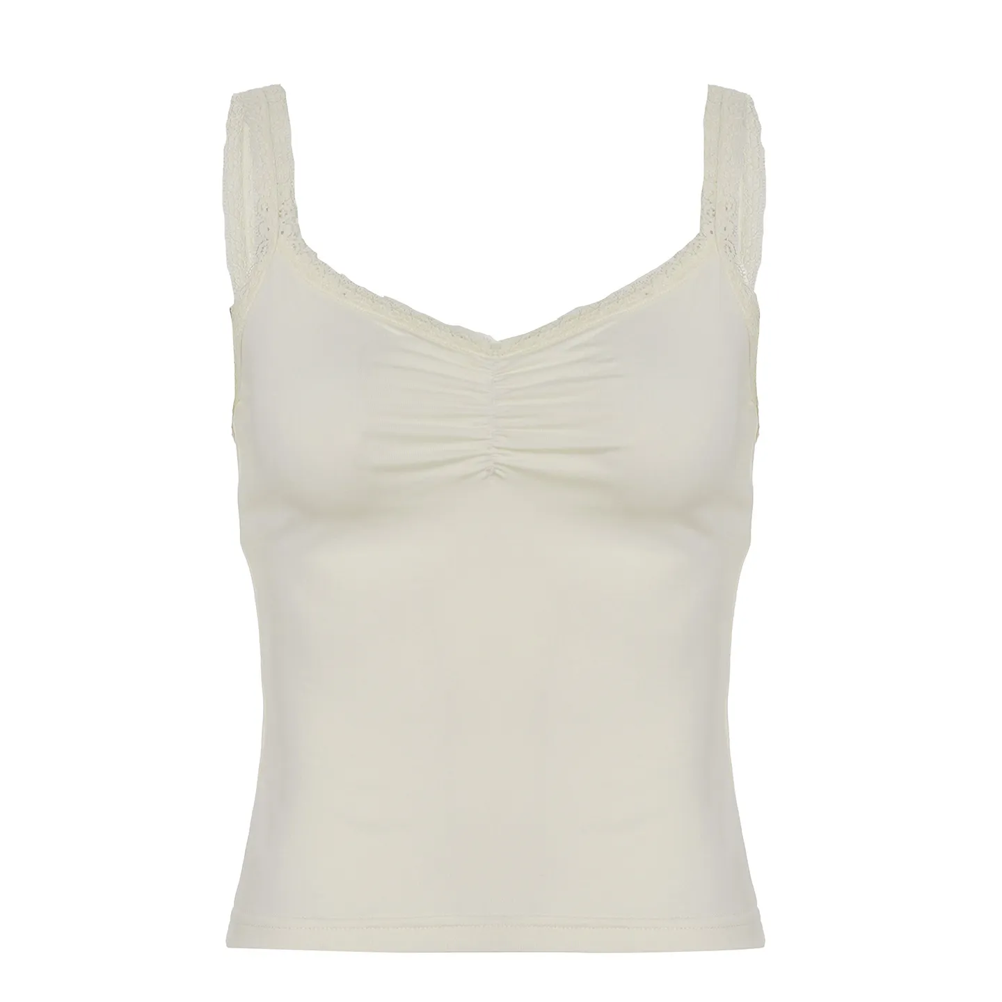 Lace Stitching Pleated Spaghetti Strap Tank Top: Elegant, Feminine, and Effortlessly Chic