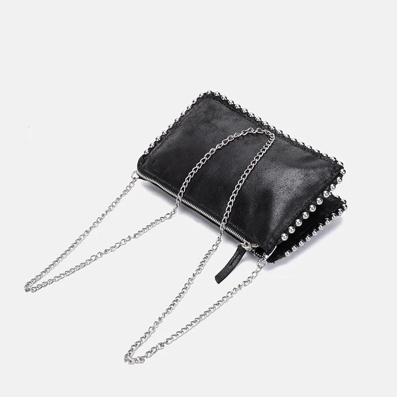Ladies Bag Beaded Black Small Square Bag Compartment Wallet