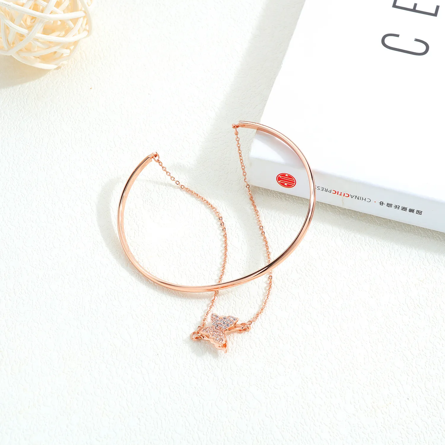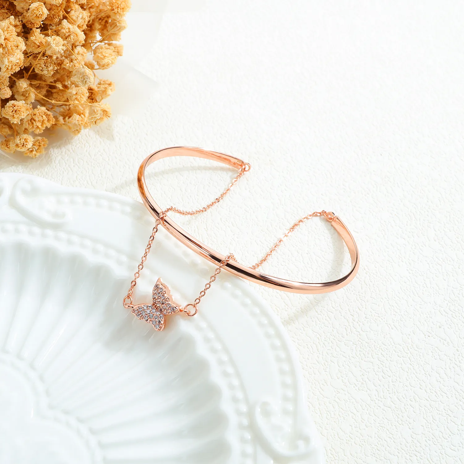 Ladies Copper Plated Rose Gold Diamond Bracelet