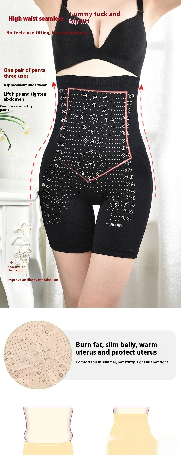 Ladies' Hip Lifting Hip Withdraw Postpartum Negative Oxygen Ion Waist Trimming And Body Shaping Hip Training Pants