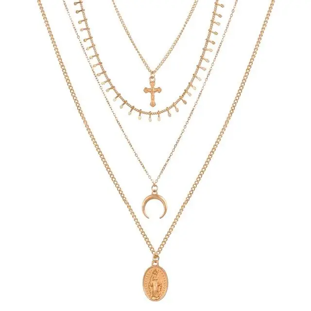 Ladies popular necklace cross moon pendant