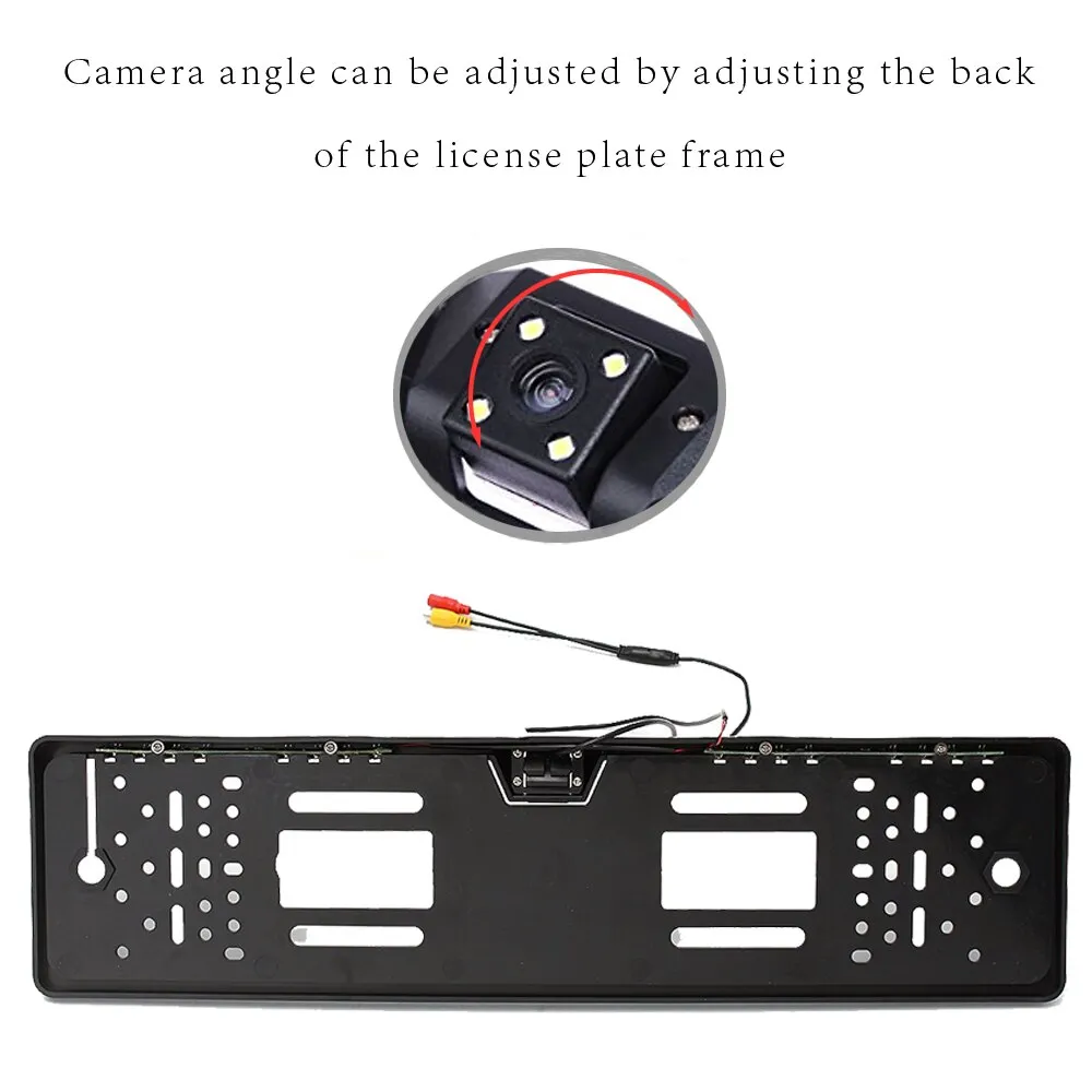 Integrated LED Lighting: The frame includes energy-efficient LED lights that illuminate the license plate for improved