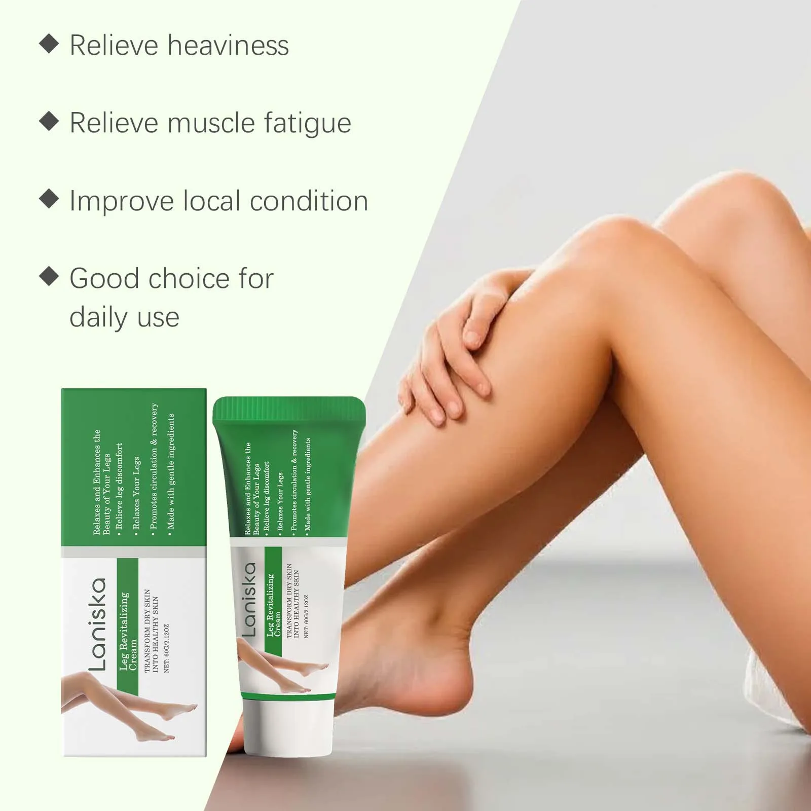 In conclusion, Laniska Leg Revitalizing Cream is the ideal solution for anyone looking to revitalize, soothe, and hydrate their legs. Its ability to reduce swelling, relieve fatigue, and promote circulation makes it perfect for daily use or as a recovery cream. Whether you're dealing with tired legs from long hours of standing or simply need to refresh your skin, this cream provides the perfect solution for rejuvenating your legs.