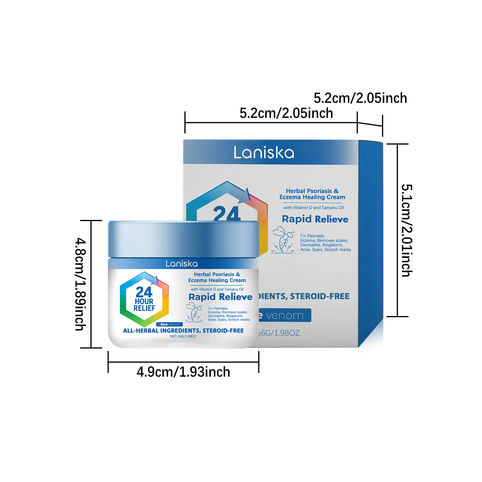Laniska’s Skin Soothing Repair Cream is formulated with active ingredients like bee venom, vitamin D, and tamanu oil to help calm, nourish, and restore the skin. This cream is designed to provide rapid relief for dryness and irritation while supporting natural skin repair.
