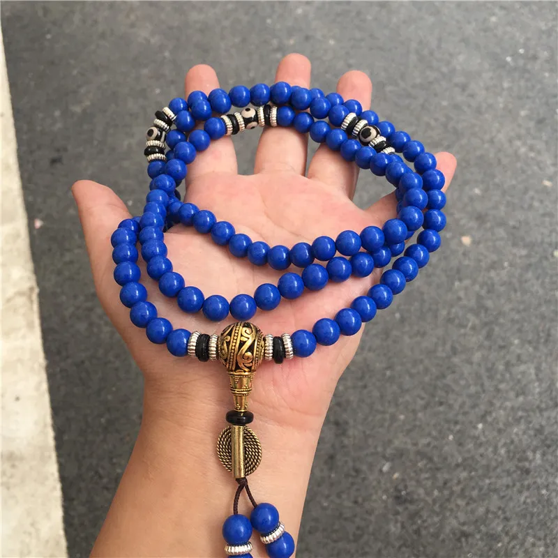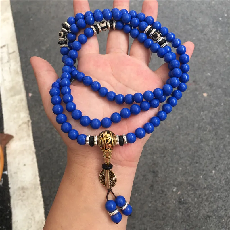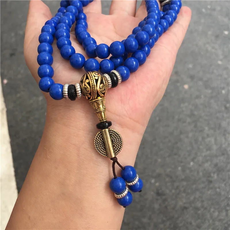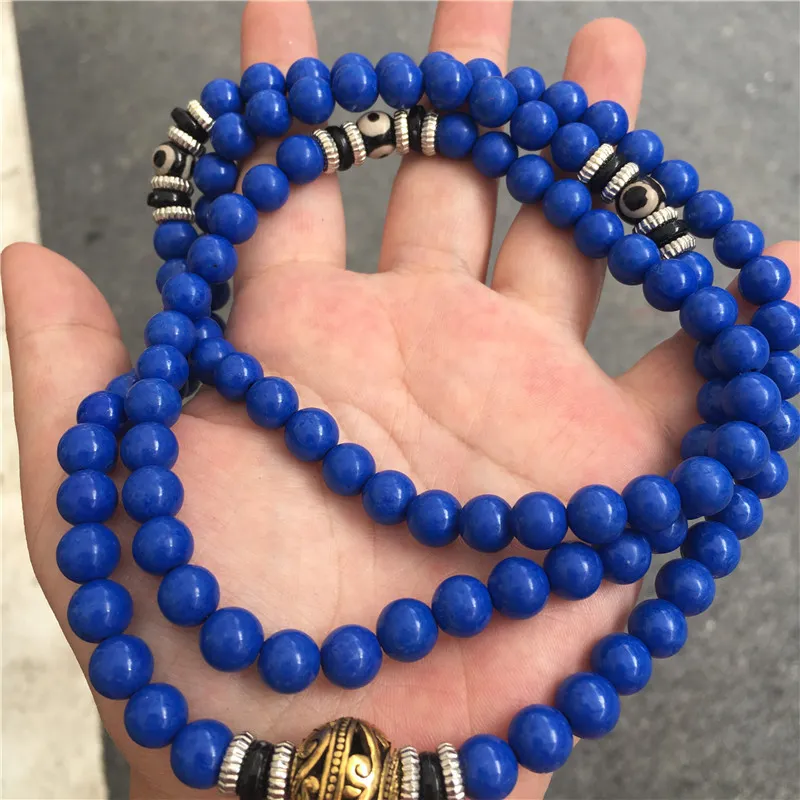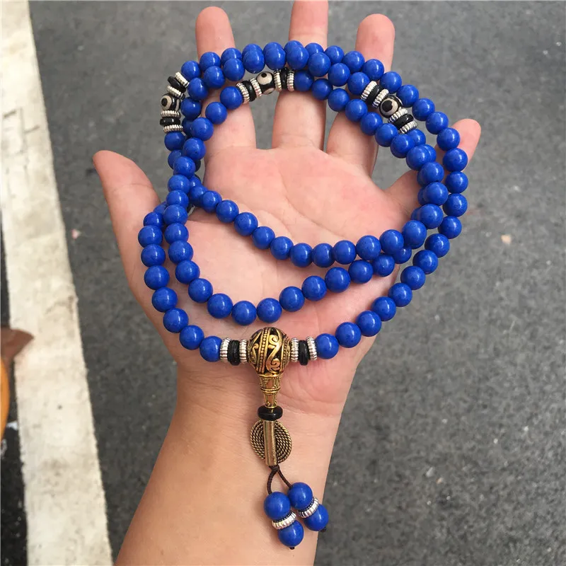 Lapis Lazuli 108 Beads Multi-Circle Bracelet – Tibetan Style Spiritual Jewelry
