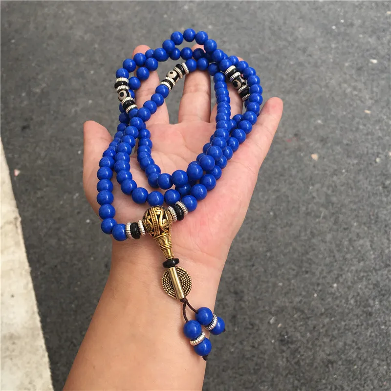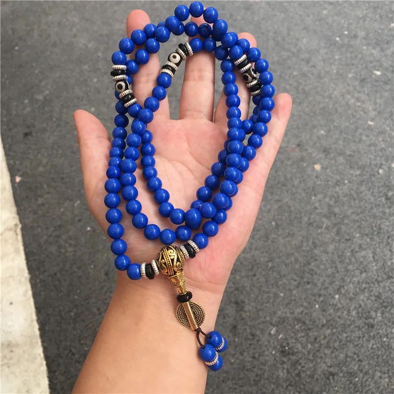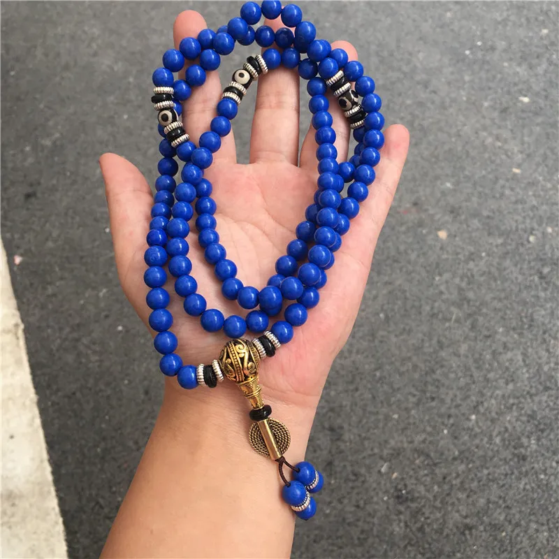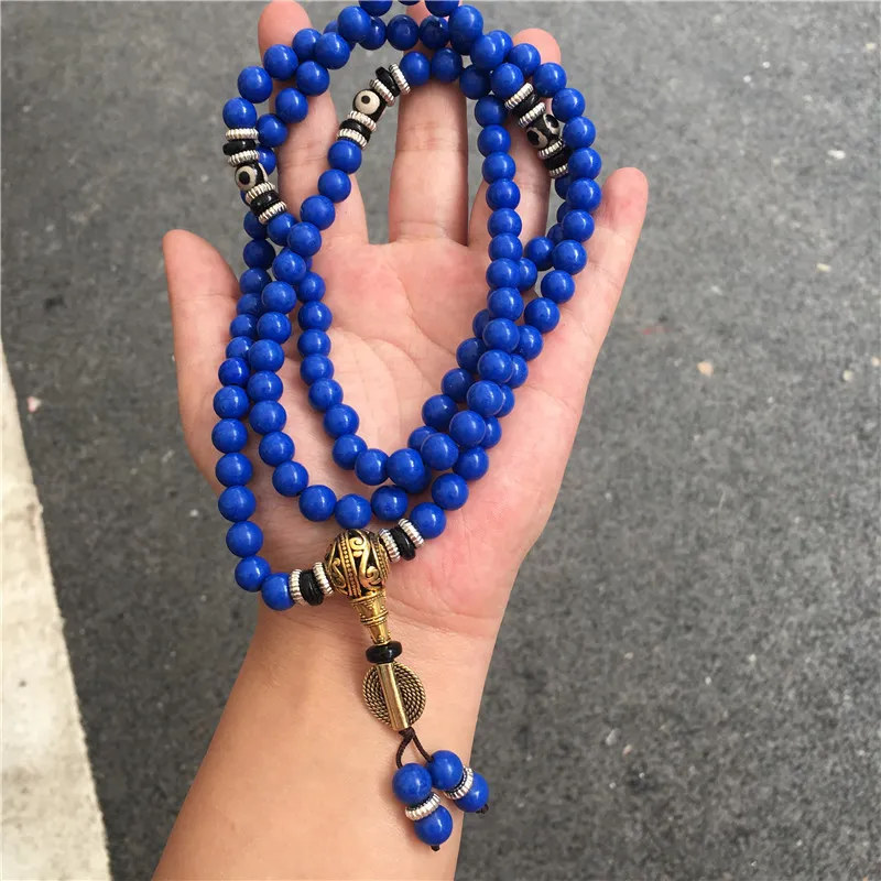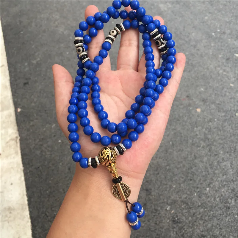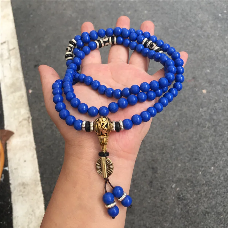 Lapis Lazuli 108 Beads Multi-Circle Bracelet – Tibetan Style Spiritual Jewelry