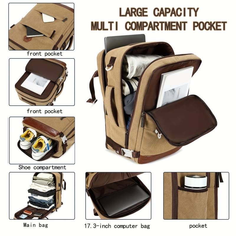 Made from durable polyester and canvas, the Laptop Backpack offers a robust design that is perfect for both daily use and travel. The spacious 40L capacity provides ample room for all your essentials, including clothes, books, and gadgets, while the dedicated laptop compartment fits up to a 17-inch device, keeping your tech secure during your travels.