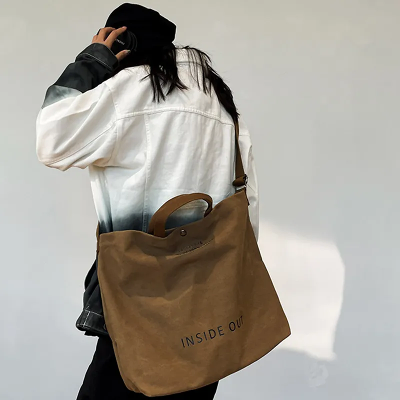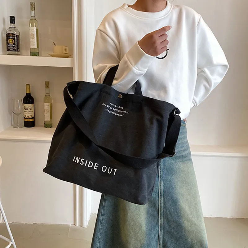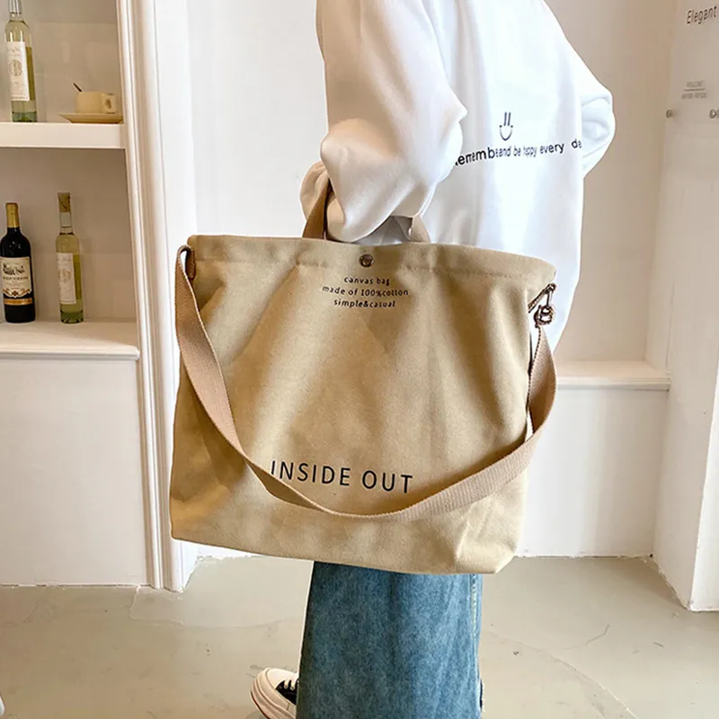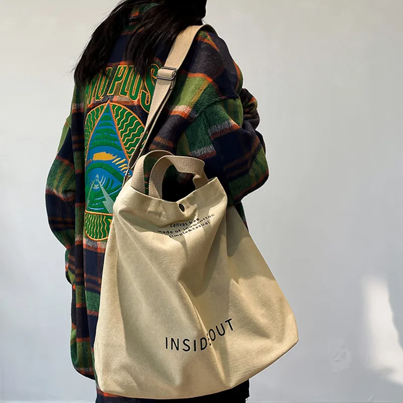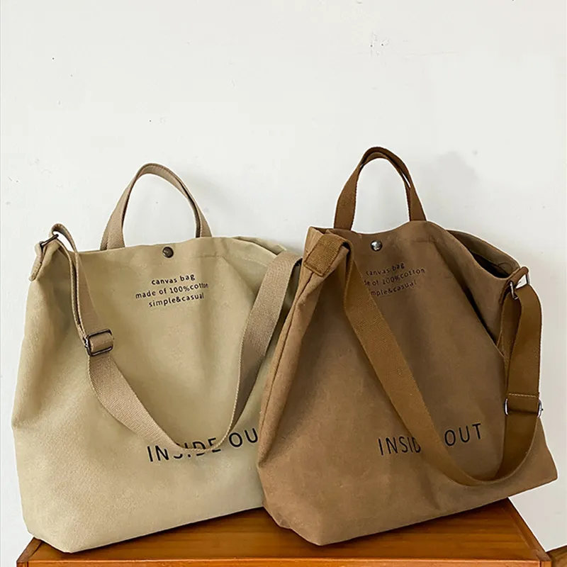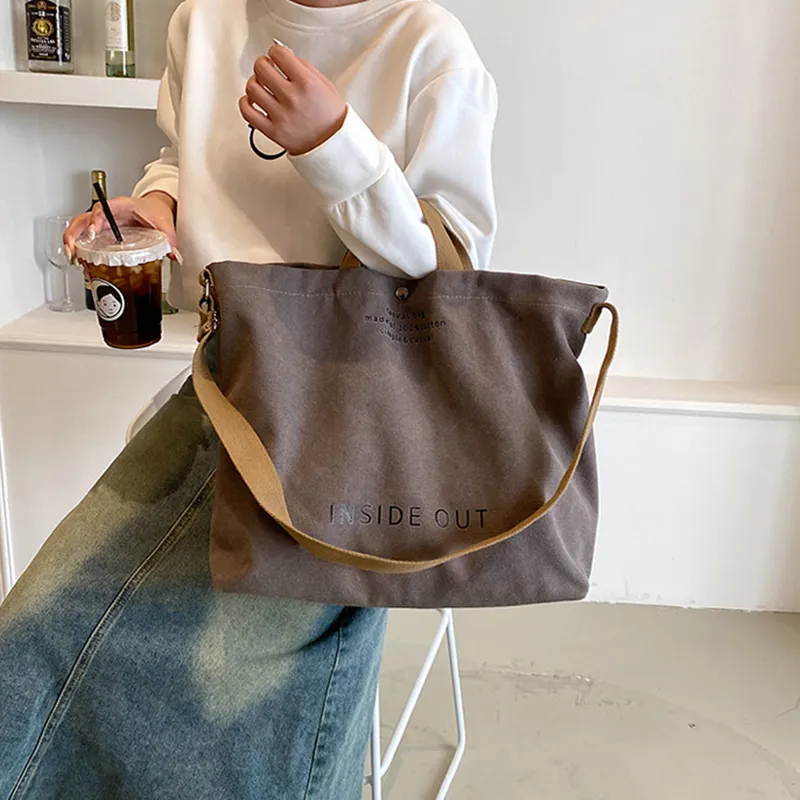 Large-capacity Canvas Bags Women Casual Fashion Totes Alphabet Print Shoulder Bag With Adjustable Strap Retro Handbag For Shopping