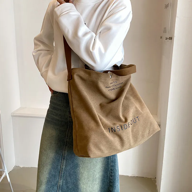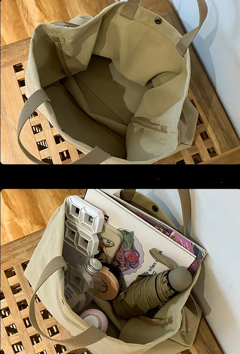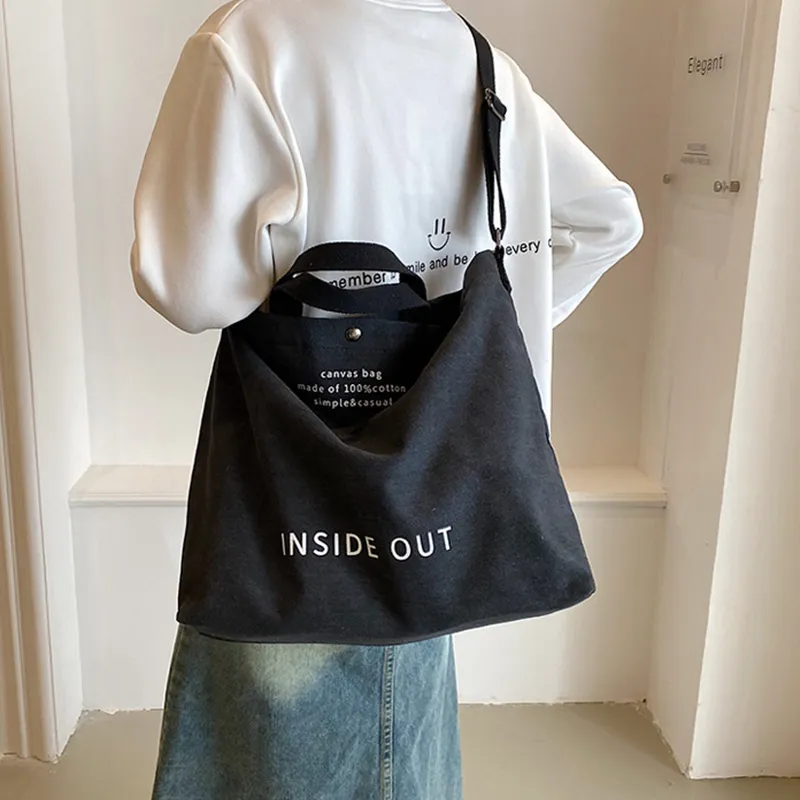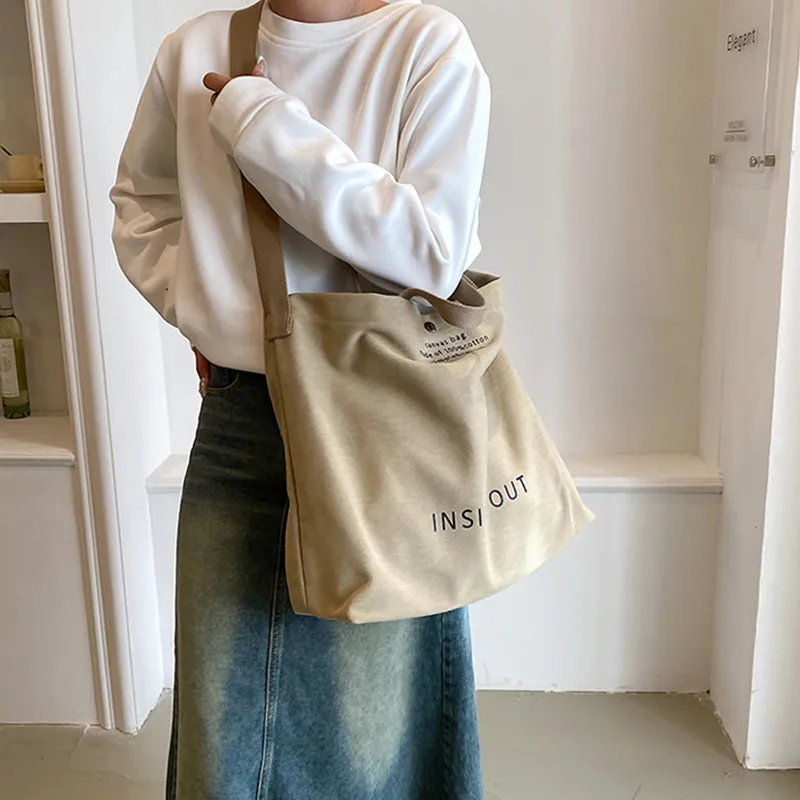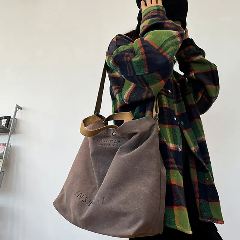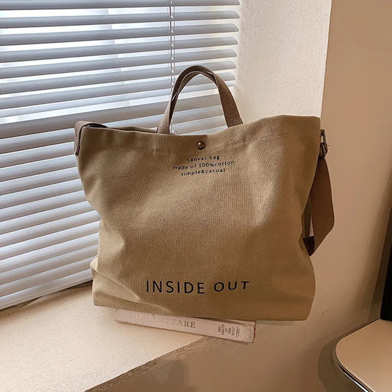 Large-capacity Canvas Bags Women Casual Fashion Totes Alphabet Print Shoulder Bag With Adjustable Strap Retro Handbag For Shopping