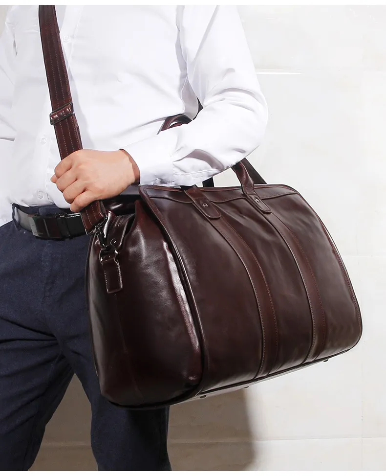 Large Capacity Genuine Leather Travel Luggage Bag Cowhide Handbag