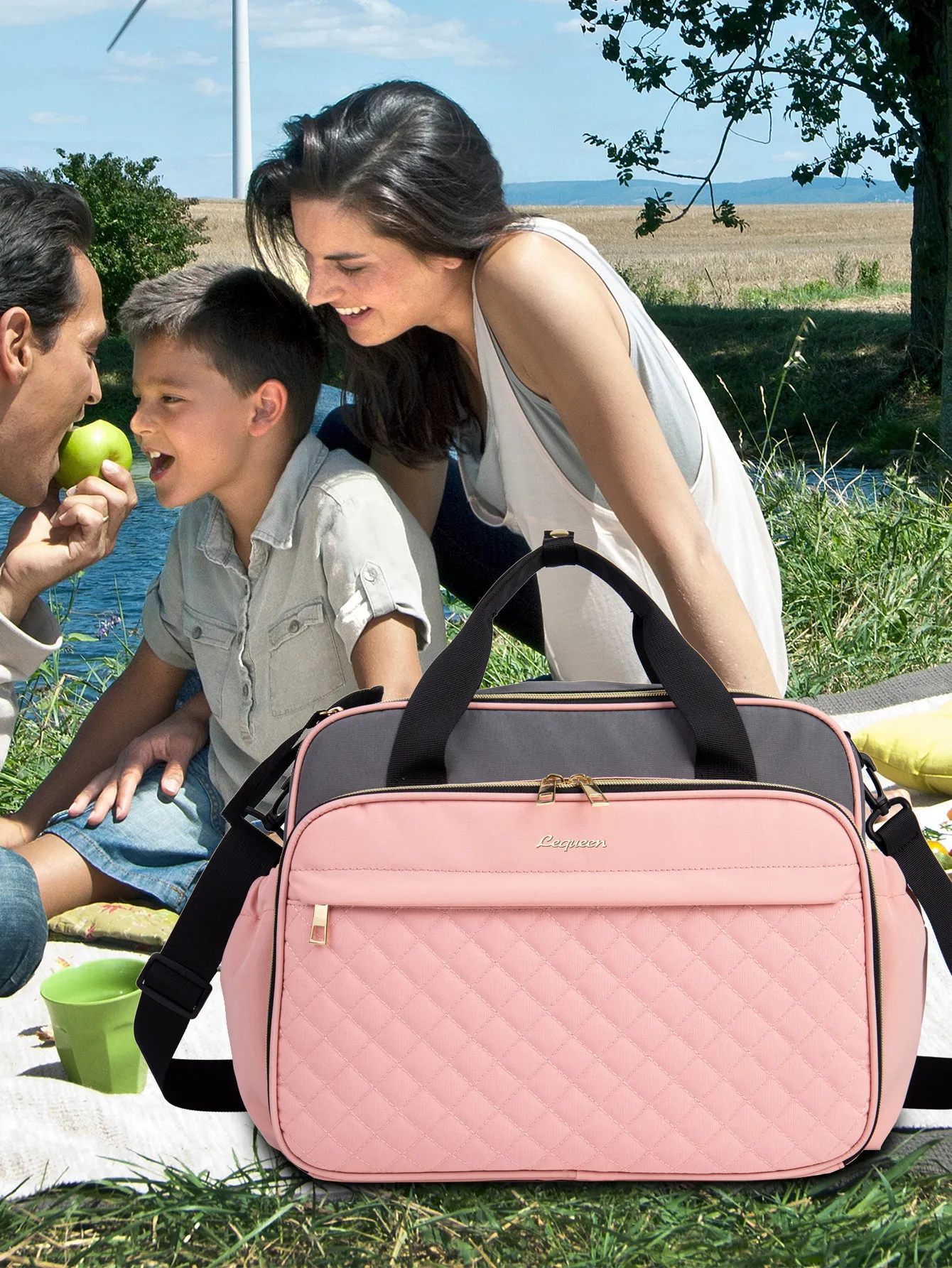 The bag features easy-to-access pockets and zippered compartments to keep your items organized and easily reachable. No more digging around for your keys or baby wipes – everything has its place, so you can quickly grab whatever you need, whenever you need it.