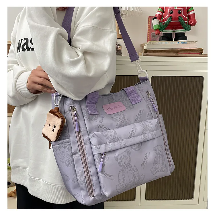 The Bear Print Large Capacity Multi-Pocket Tote Bag is designed for the modern woman who needs a blend of practicality and style. Its large capacity and multiple compartments make it ideal for carrying a variety of items, whether for casual outings, travel, or daily use.
