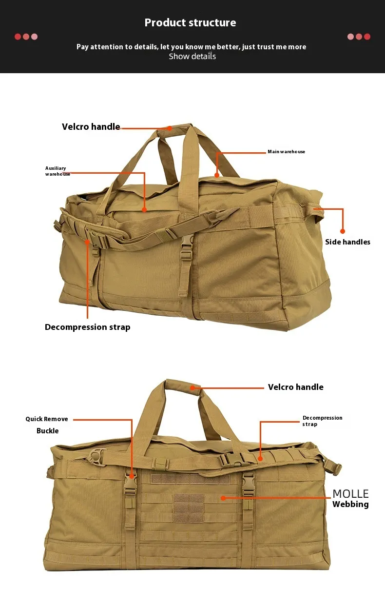 Customizable Storage: The MOLLE webbing system allows you to add additional gear, making it easy to expand the bag's